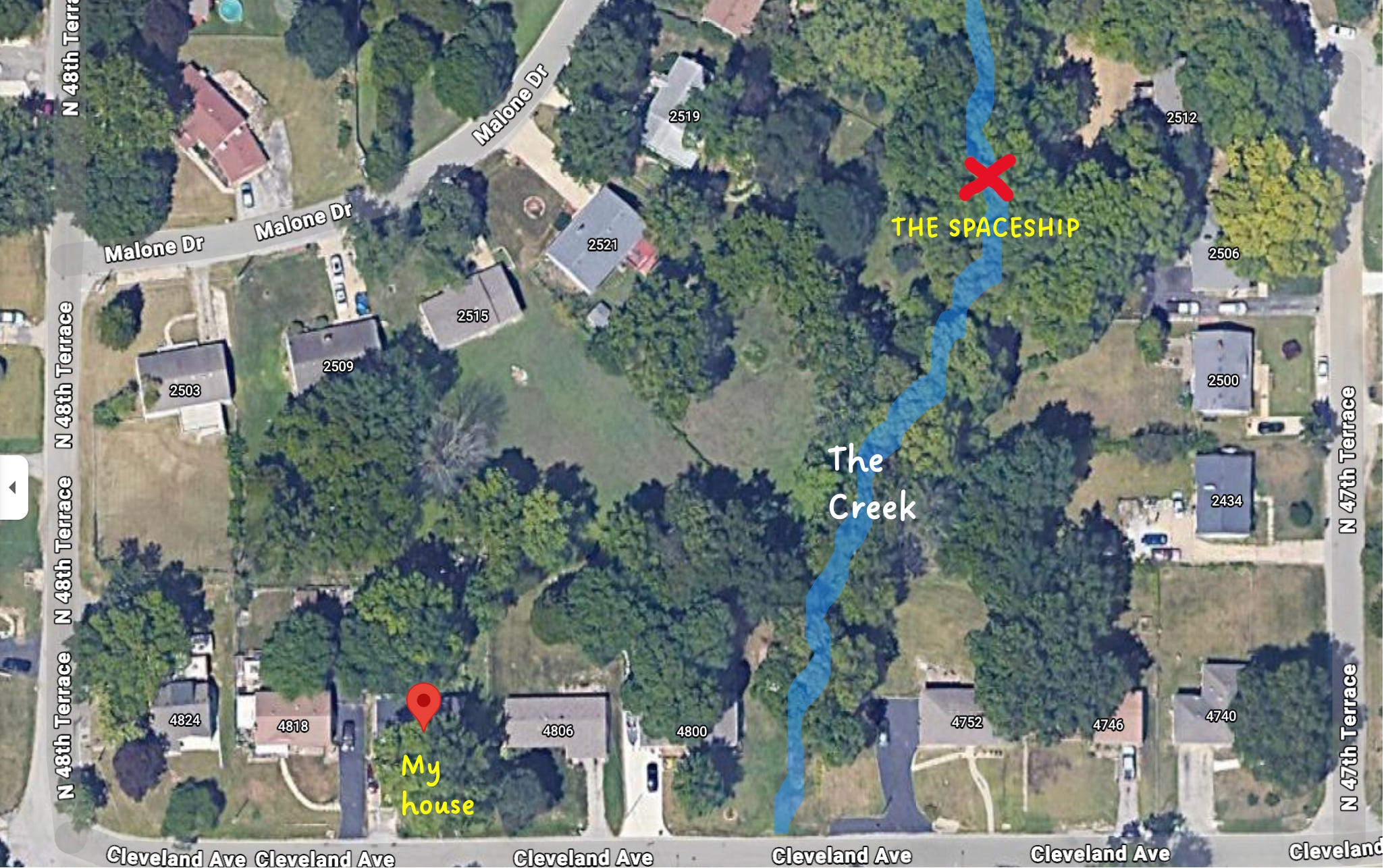 I was true to my word for decades: besides my wife and son, I never told anyone about the spaceship. I don’t know if Stacy or Andy ever did – about a year after our discovery, my family moved from the neighborhood.